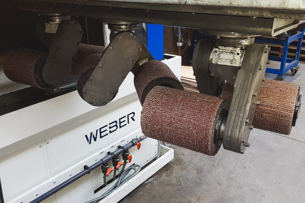 Zum Entgraten, Kantenverrunden und Oberflächenfinish der Blechteile verwendet GEWA eine WEBER Metallschleifmaschine aus der NLC-Baureihe. „Dank der Nassschleiftechnik der Maschine können wir einfach und sicher Stahl, Edelstahl und Aluminium auf derselben Anlage bearbeiten. Auch ölige Teile sind kein Problem“, so Walter Zwicklhuber, Geschäftsführer der GEWA Blechtechnik GmbH. „Für hohe Standzeiten und gute Ergebnisse sind gerade bei der Nassbearbeitung hochwertige Werkzeuge das A und O. Die boeck GmbH ist ein kompetenter Partner über die gesamte Prozesskette. Dabei geht die Beratung weit über die Auswahl der Schleifmittel hinaus. Auch bei der Prozessoptimierung stehen sie uns mit Rat und Tat zur Seite. So werden zum Beispiel Maschinen- und Werkzeugparameter wie Schnittgeschwindigkeiten und Vorschubgeschwindigkeiten empfohlen und gemeinsam getestet.“