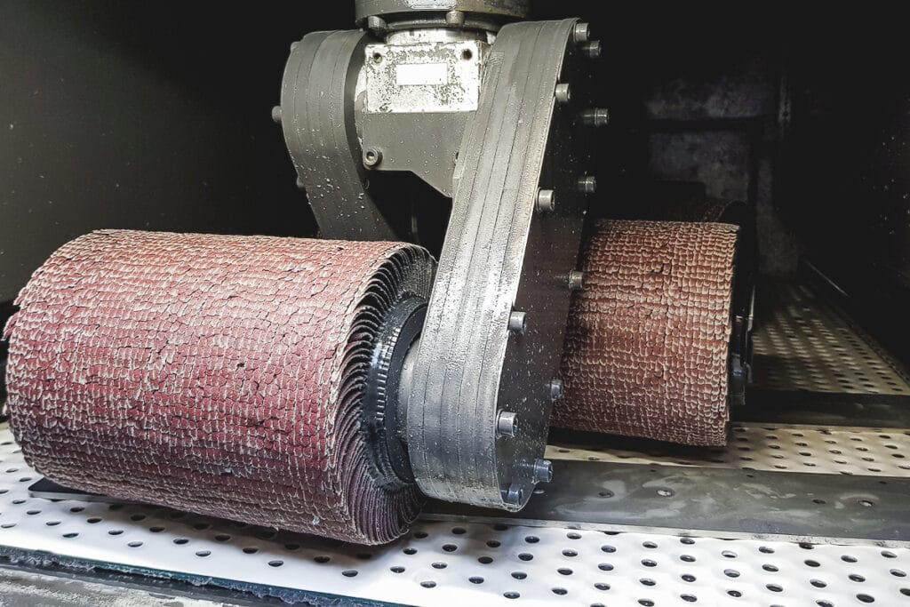 Nicht nur zum Kantenverrunden, sondern auch bei den vor- und nachgelagerten Prozessschritten verlassen sich die Experten von GEWA auf das Know-how von boeck. Für die Primärgratentfernung verwendet GEWA Schleifgewebebänder der Leipheimer in verschiedenen Qualitäten und Körnungen. „Welches Schleifgewebeband für den Prozess passend ist, hängt von der gewünschten Abtragsleistung und dem zu bearbeiteten Werkstoff ab. Boeck hat hier immer das Richtige zur Hand und kann uns die benötigten Bänder innerhalb kürzester Zeit ab Lager liefern“, so Tobias Panhuber, Einkaufsleiter bei der GEWA Blechtechnik GmbH.