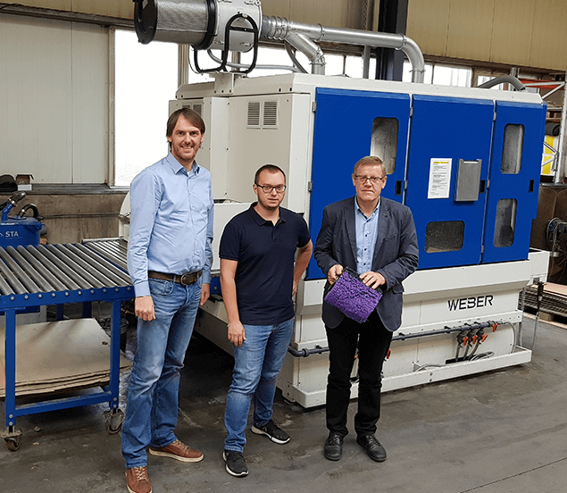 GEWA setzt Entgratwalzen mit einem Durchmesser von 250 mm, einer Breite von 260 mm und einer Aufnahmebohrung speziell für die Anwendung auf WEBER-Entgratmaschinen ein. Je nach Werkstück, gewünschtem Ergebnis beim Entgraten und Verrunden hat boeck dafür unterschiedliche Schleifgewebearten im Portfolio: Das Universaltalent für alle Blecharten ist die „Brown Edition“. Darüber hinaus eignet sich die „Grey-Edition“ zum Verrunden von Kanten an Bauteilen aus Aluminium und Kunststoff. Eine sehr hohe Abtragsleistung bzw. eine starke Kantenverrundung bietet die „Purple Edition“.