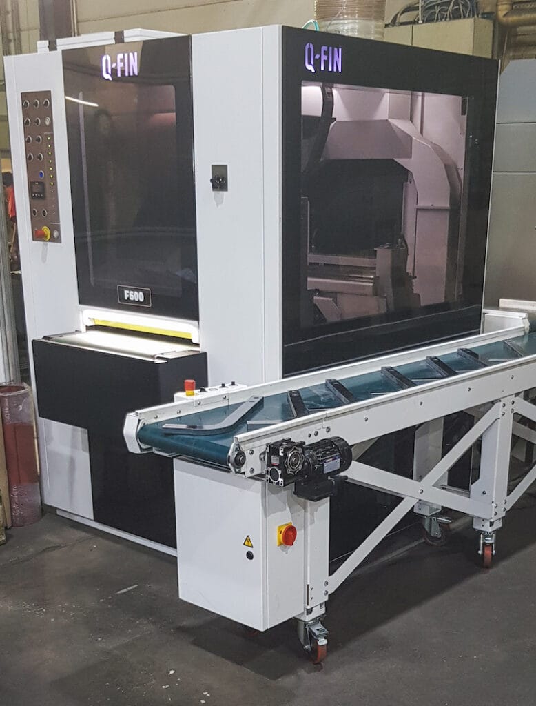 Dank der drei Bearbeitungsstationen – eine Schleifvorrichtung gefolgt von vier oszillierenden Bürsten – sind verschiedene Arbeitsschritte wie Entgraten und Kantenverrunden in einem Durchgang möglich – und das mit hoher Geschwindigkeit. „Wir wollten nicht einfach nur die manuelle Bearbeitung in einem maschinellen Prozess umwandeln, sondern unser Fokus lag vor allem auch darauf, eine sehr starke Kantenverrundung innerhalb kürzester Zeit bei gleichzeitig hoher Arbeitsgeschwindigkeit bzw. Vorschubgeschwindigkeit zu erzielen“, erklärt David Welter. „Die Q-FIN-Maschine ist perfekt für diese Anforderungen. Die passenden Werkzeuge, die in dieser Welt der Extreme Bestleistung bringen, fanden wir in den HERO-Entgrattellern von boeck.“