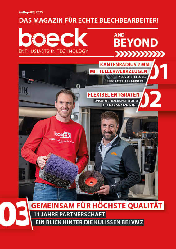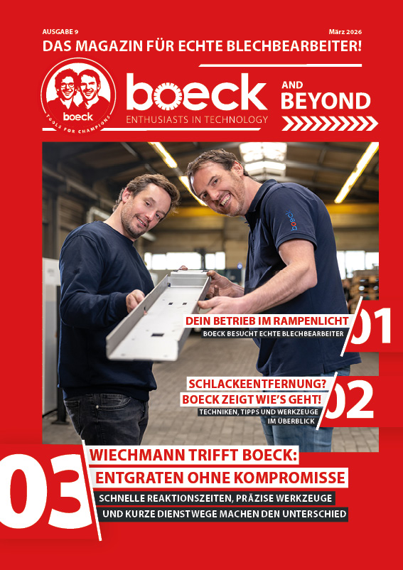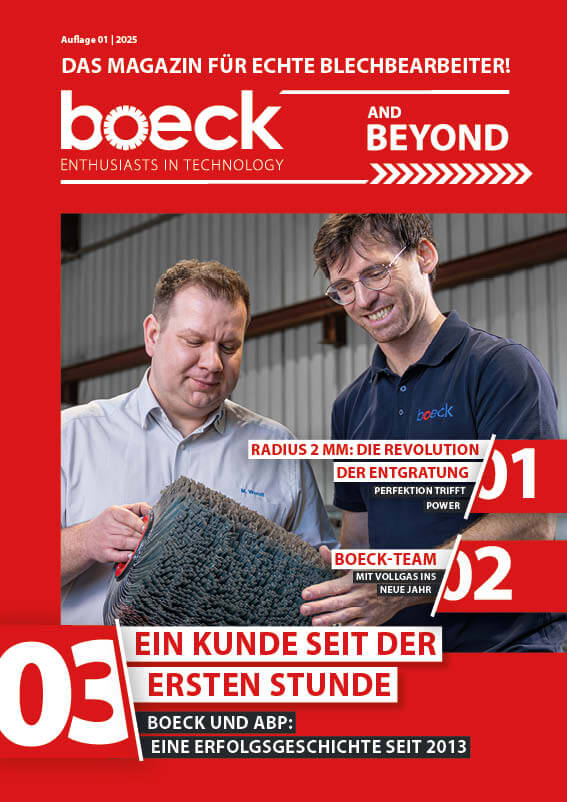Entdecke das boeck Kundenmagazin – aktuelle Trends, Innovationen und Expertenwissen rund ums Entgraten und die Blechbearbeitung. Bleib informiert – jetzt das boeck Kundenmagazin lesen!