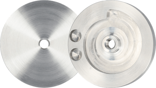 Der Teller ist in verschiedenen Aufnehmbaren Durchmessern erhältlich – von 82 mm bis 260 mm – und deckt somit ein breites Anwendungsspektrum ab. Ebenso variabel gestaltet sich die Bohrung mit Optionen wie M8 oder M12 Schraubendurchgängen, Kupplung oder Mitnehmerbohrung, was die Anpassung an verschiedene Maschinen und Werkzeuge erleichtert.